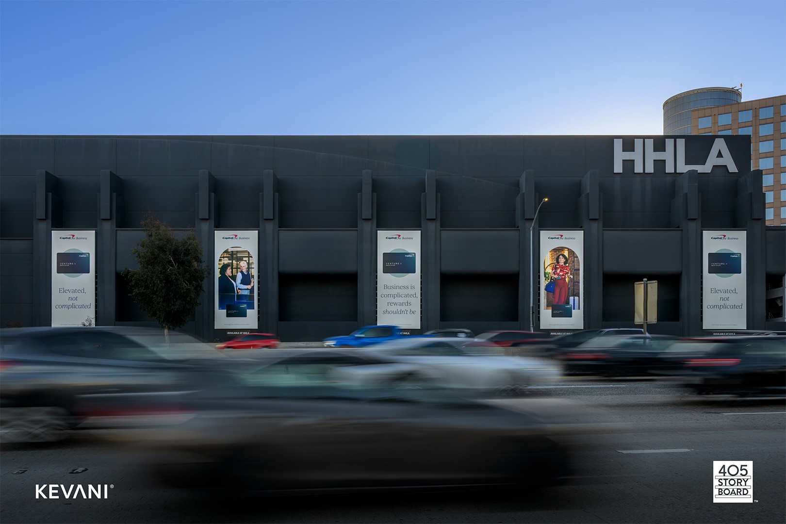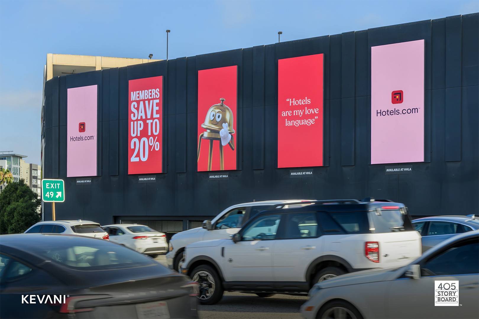 Appropriately named 405 Storyboard, this series of ten backlit displays along Interstate 405 raises visual storytelling to new heights. With over 4,400 sq. ft of on-premise advertising space, 405 Storyboard boasts unfaltering visibility to northbound and southbound traffic with a clear line of sight, garnering a massive 85 million monthly impressions.