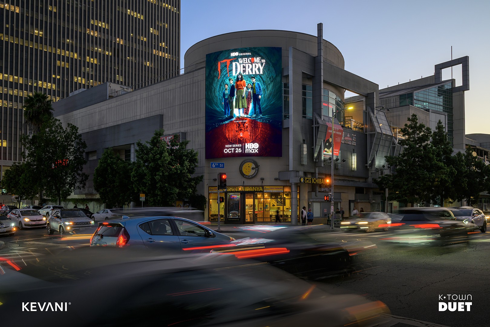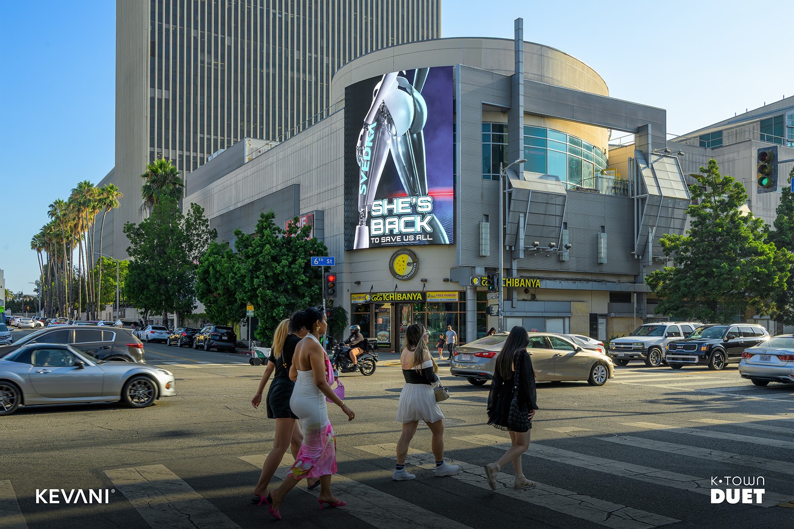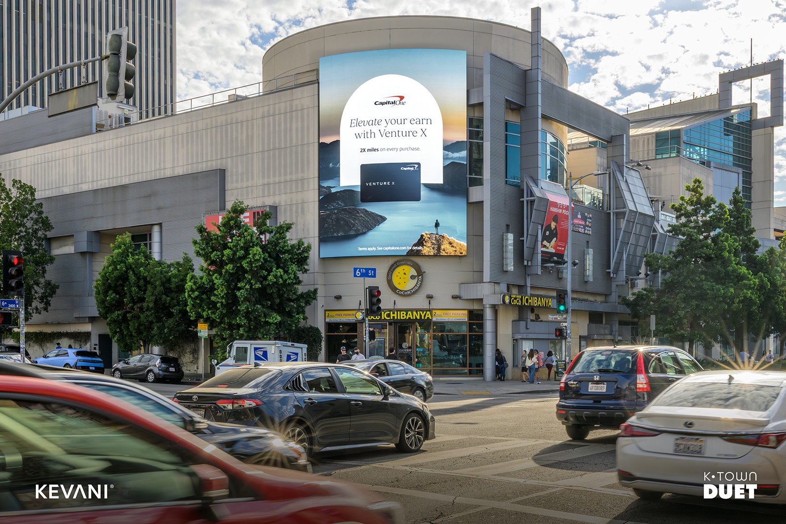 K-Town Duet is a dual-screen digital spectacular located at City Center on 6th, in the heart of Koreatown. Positioned along one of the busiest corridors in Los Angeles, these two curved, high-resolution displays deliver premium front-on visibility to both eastbound and westbound traffic on 6th Street. With over 39 million audited monthly impressions, K-Town Duet reaches a diverse, mobile audience in a district known for its 24-hour culture, entertainment, and dining scene, offering on-premise brands a dominant presence in one of LA’s most culturally rich and trend-driven neighborhoods.