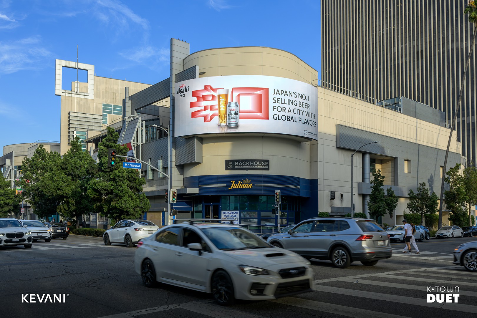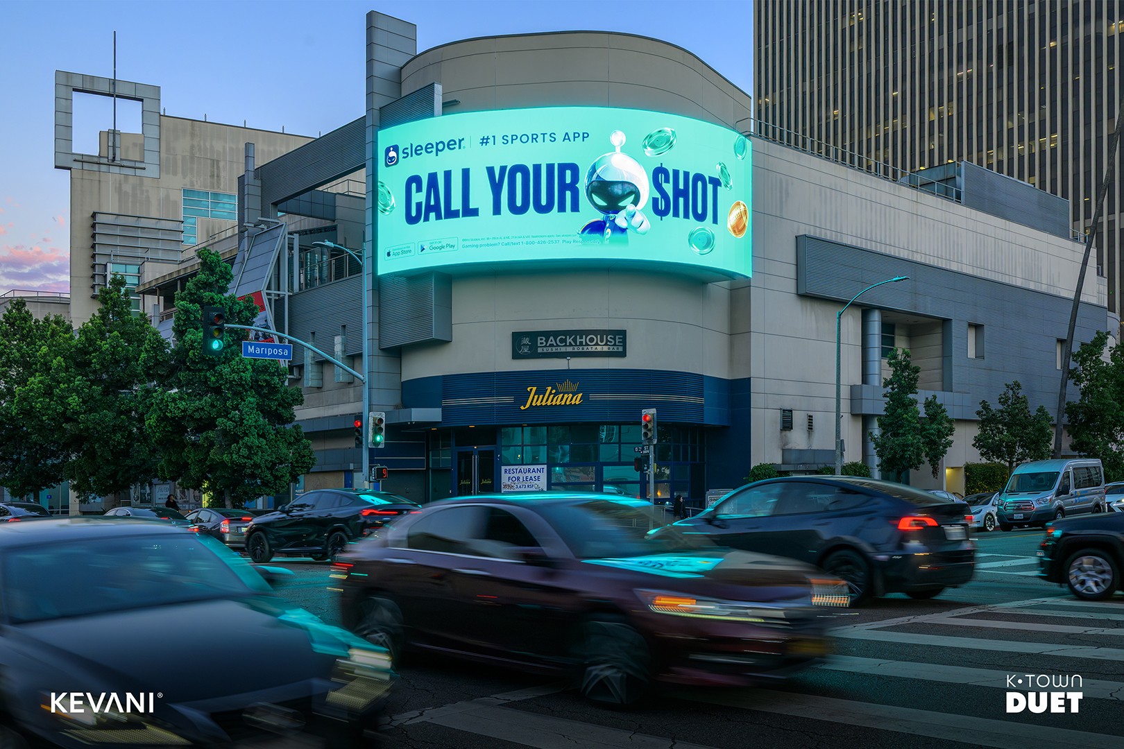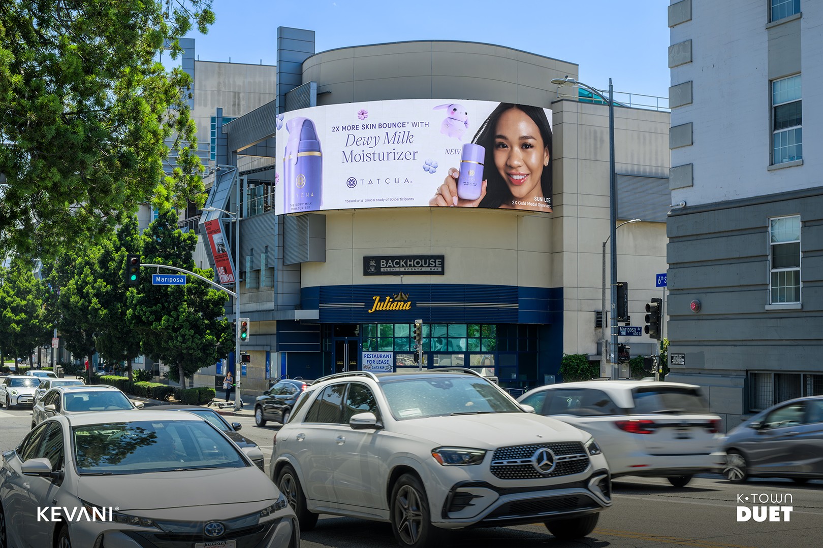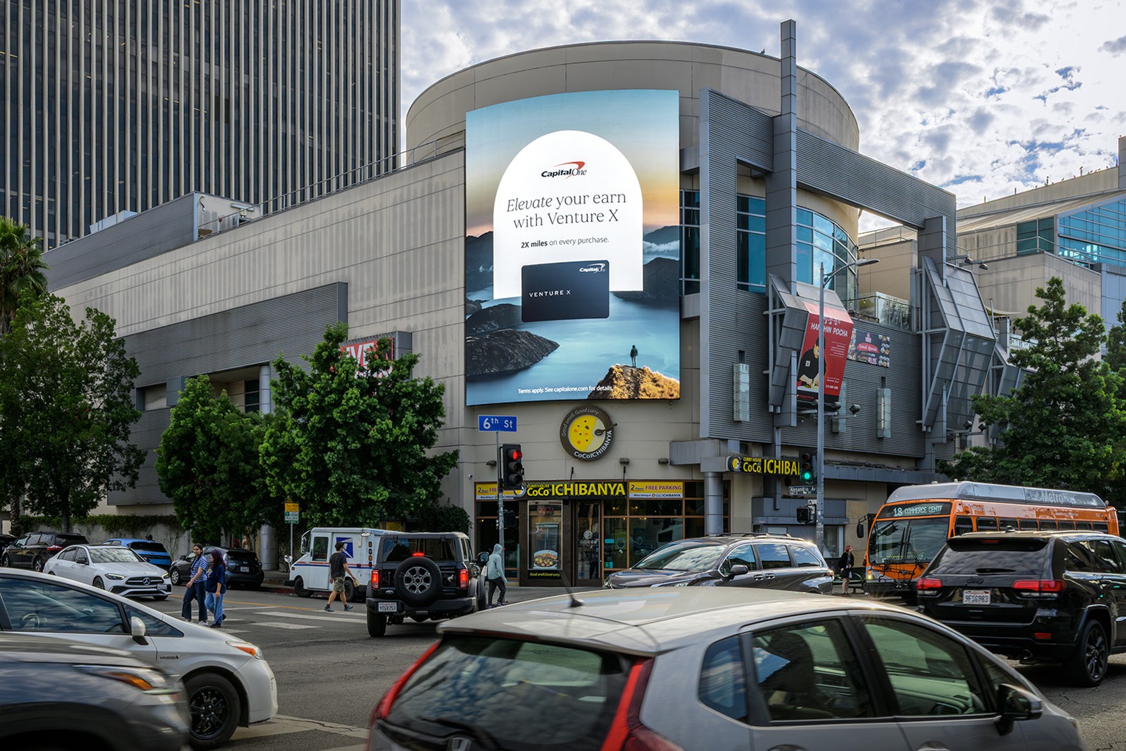 K-Town Duet is a dual-screen digital spectacular located at City Center on 6th, in the heart of Koreatown. Positioned along one of the busiest corridors in Los Angeles, these two curved, high-resolution displays deliver premium front-on visibility to both eastbound and westbound traffic on 6th Street. With over 39 million audited monthly impressions, K-Town Duet reaches a diverse, mobile audience in a district known for its 24-hour culture, entertainment, and dining scene, offering on-premise brands a dominant presence in one of LA’s most culturally rich and trend-driven neighborhoods.