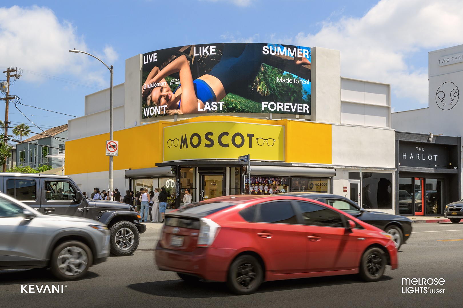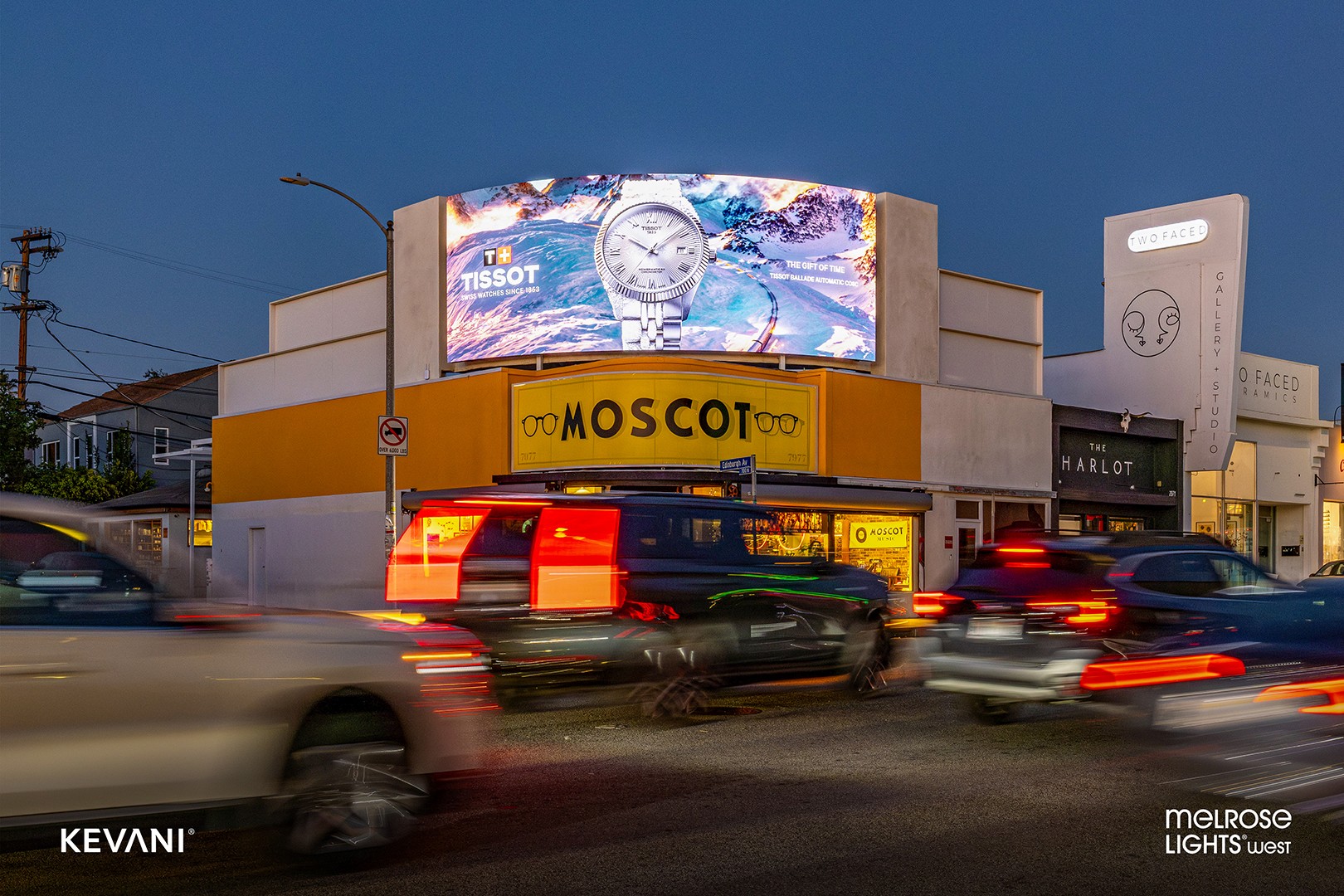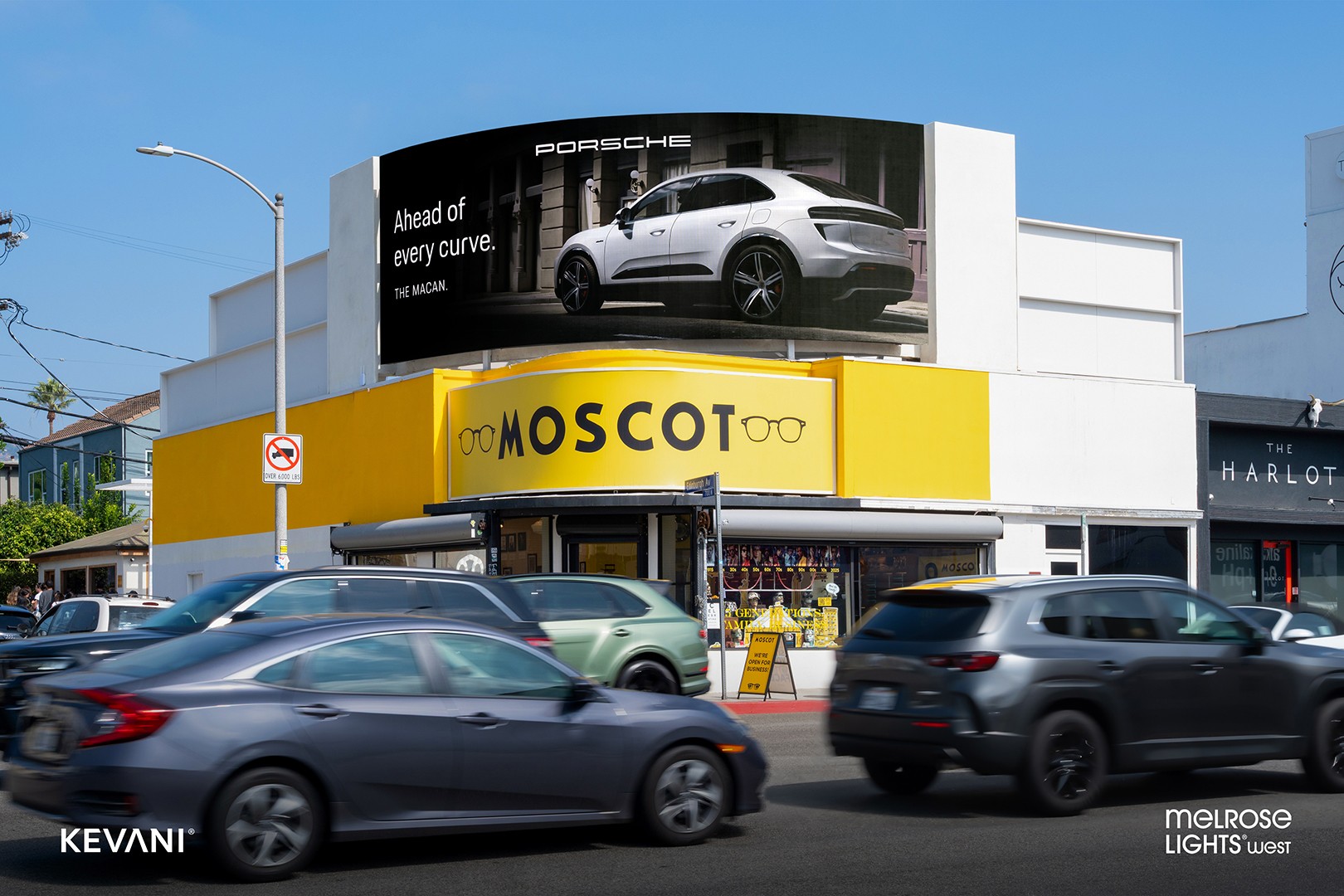 Melrose Lights | West is nestled amongst all the trendy eateries and shopping in this highly desirable corridor of Los Angeles. Given its prominent position, the screen will impact both vehicular traffic leaving West Hollywood and Beverly Hills as well as pedestrians exploring the famous avenue. This location features a 6mm pitch super high resolution, operates 24/7, and will deliver over one million monthly impressions, providing on-premise advertisers with unmatched exposure.