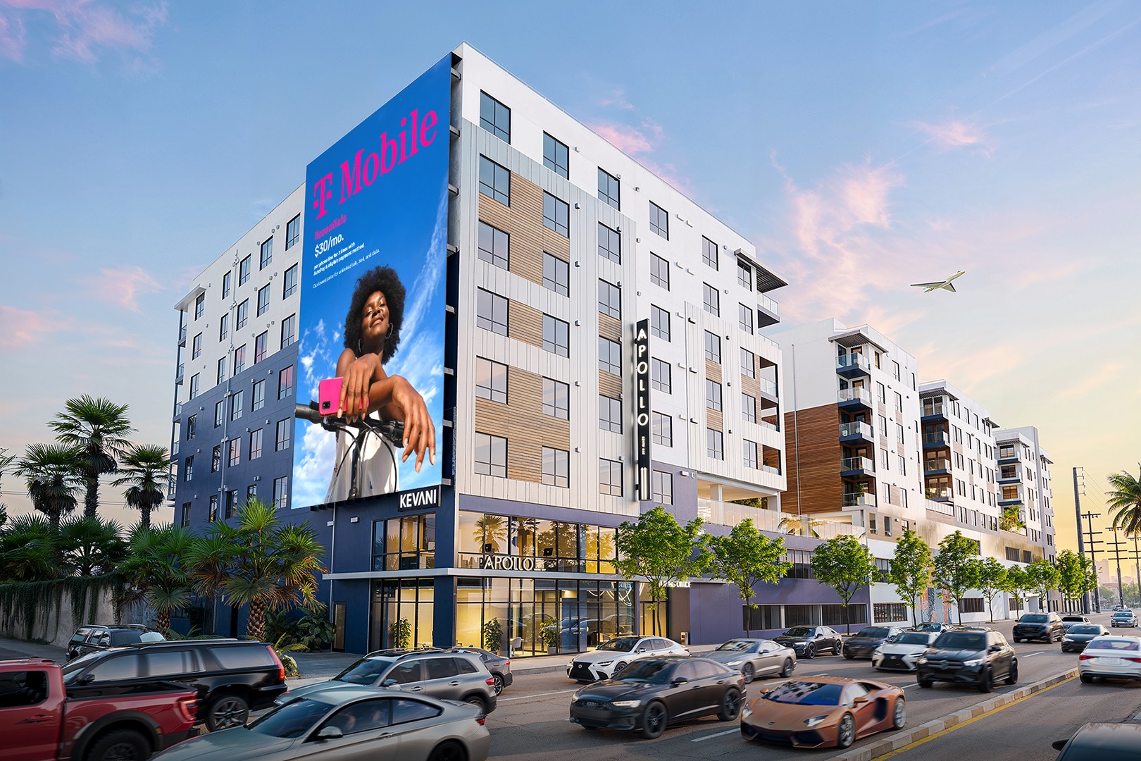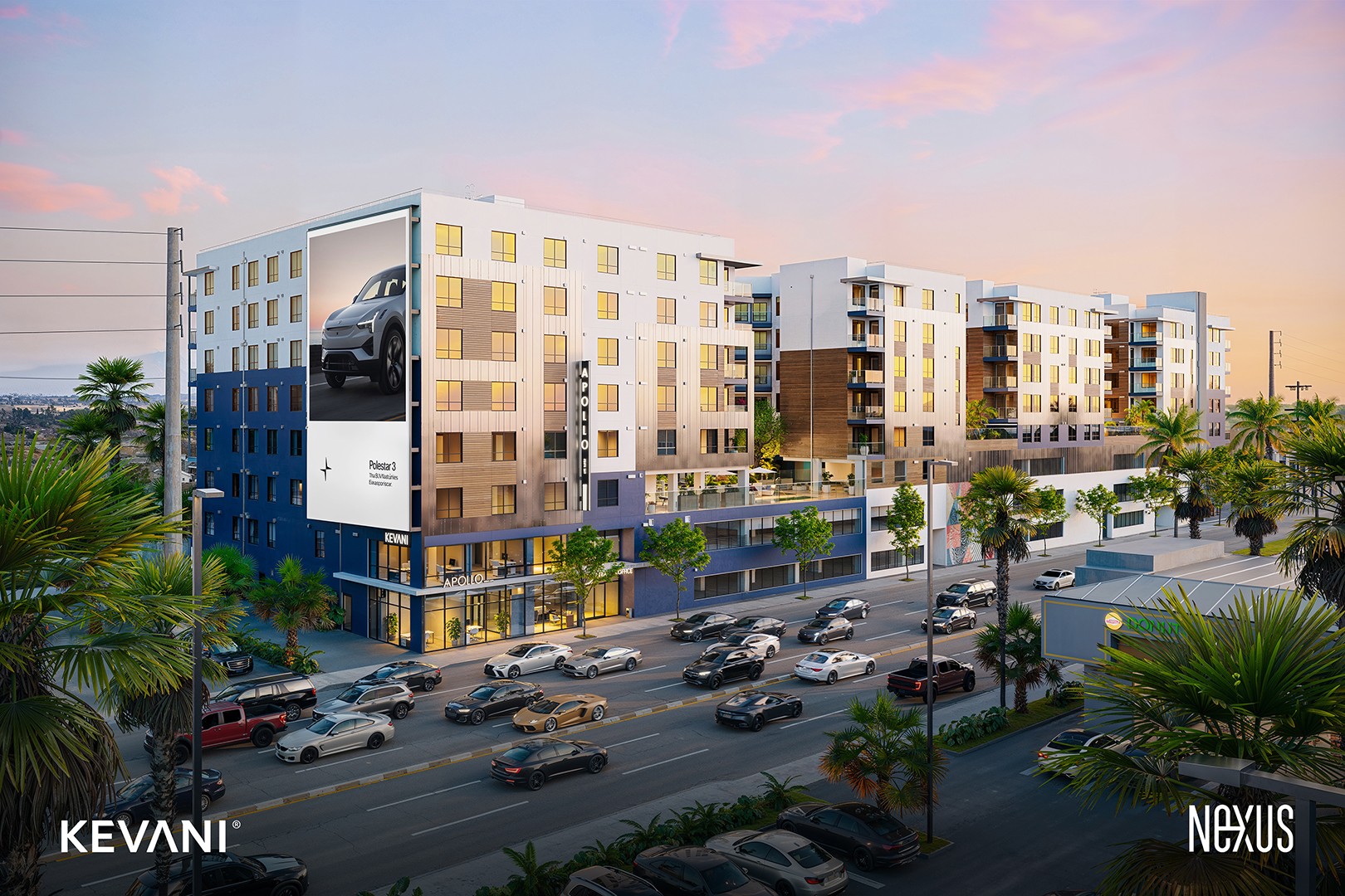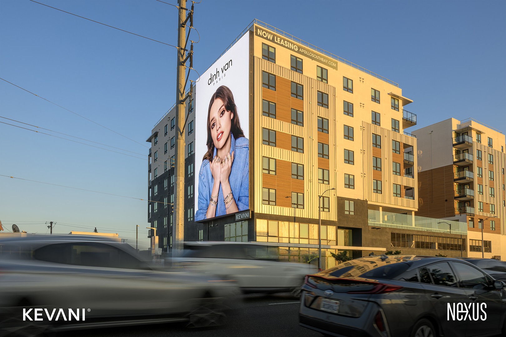 Nexus is prominently positioned on the facade of Apollo, a newly developed luxury residential complex. This high impact display is located near major tech, automotive, and aerospace hubs in Los Angeles’ South Bay Region, including SpaceX, the Tesla Design Center and Ring.