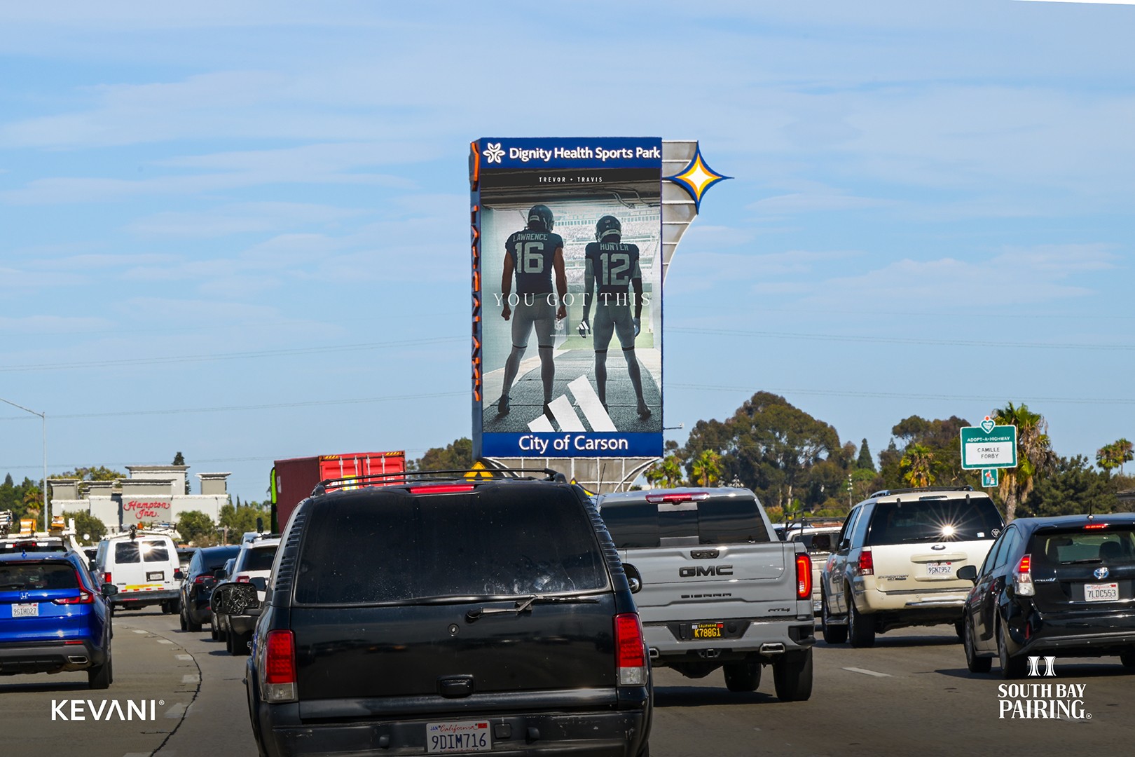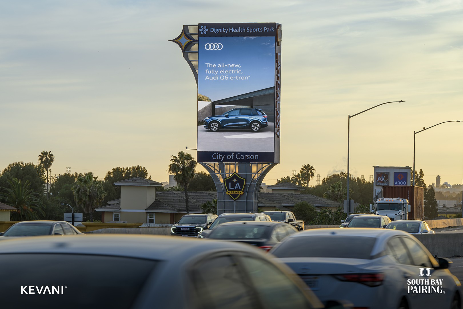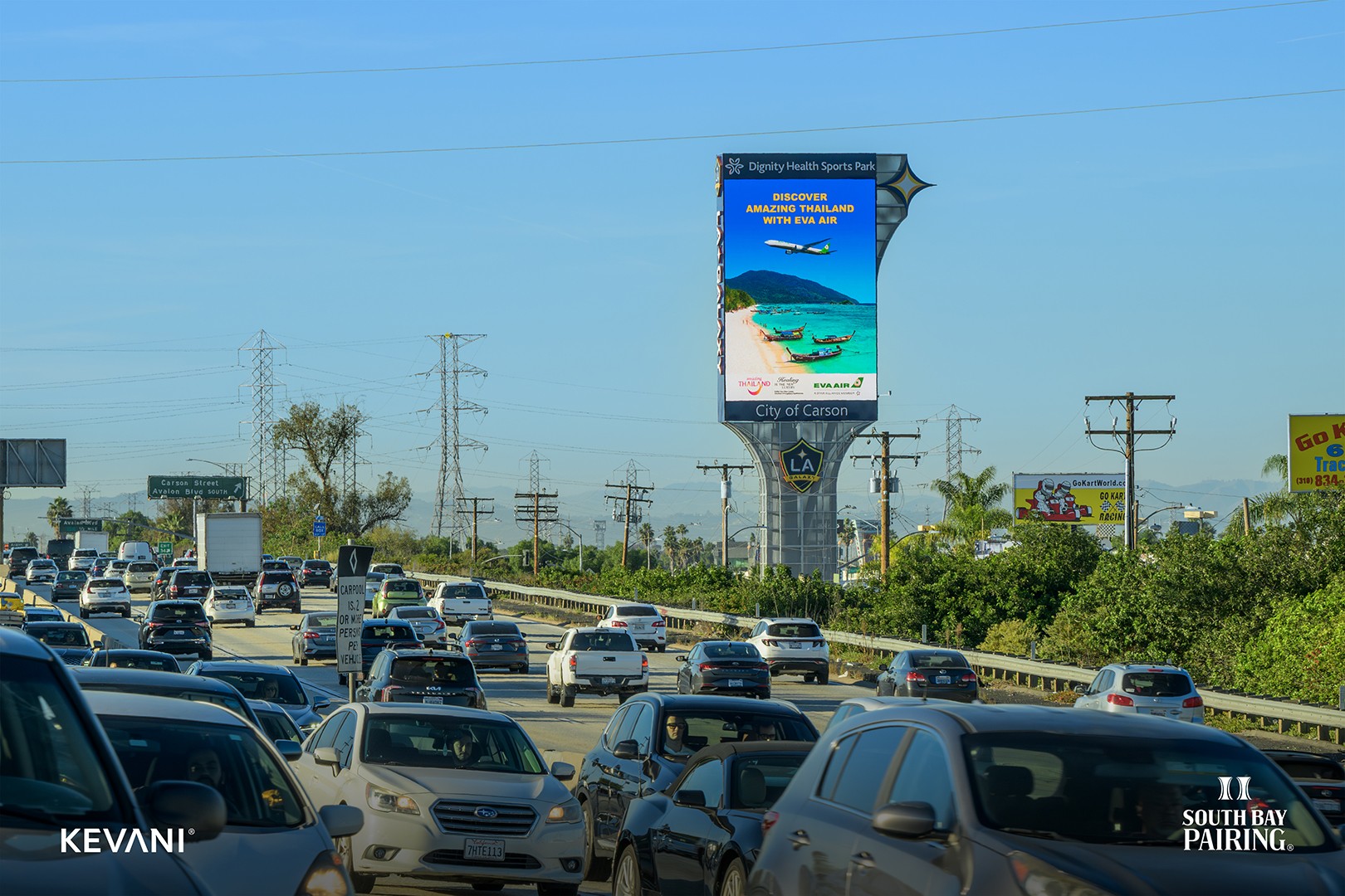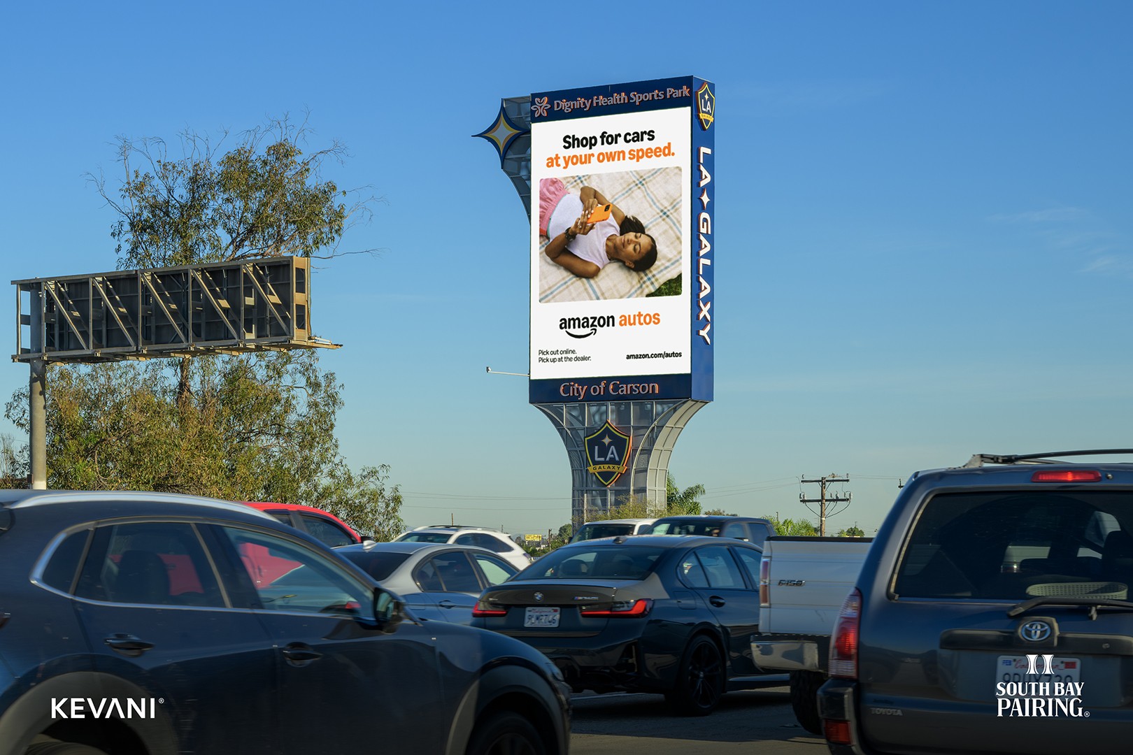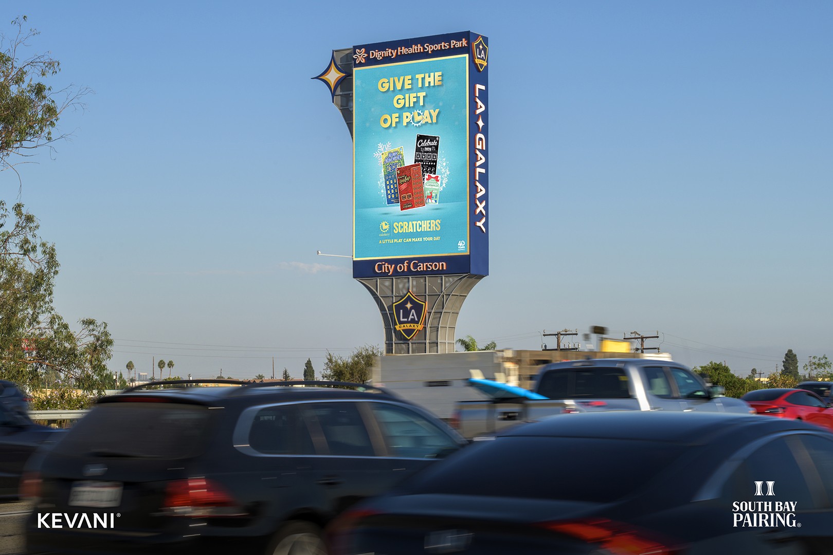 Welcome to South Bay Pairing, where iconic digital advertising meets the heart of Southern California. As the largest media destination in the area, the pair consists of two double-sided, synchronized screens along the heavily traveled routes of Interstate 405 and Highway 91. The structures are placed close to the freeways with a clear line of sight, making them a powerful canvas for brands to tell their story. Explore the dynamic possibilities of connecting your brand with our prime audience or discover how our strategically positioned displays can amplify your message in this thriving region.
