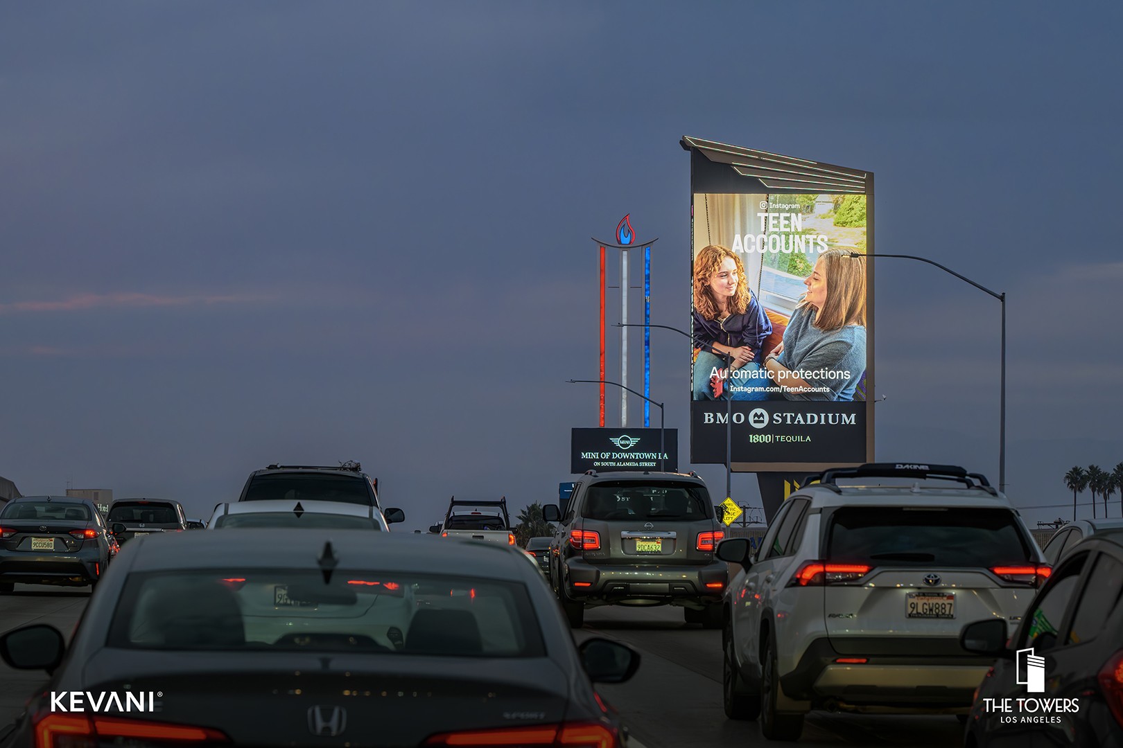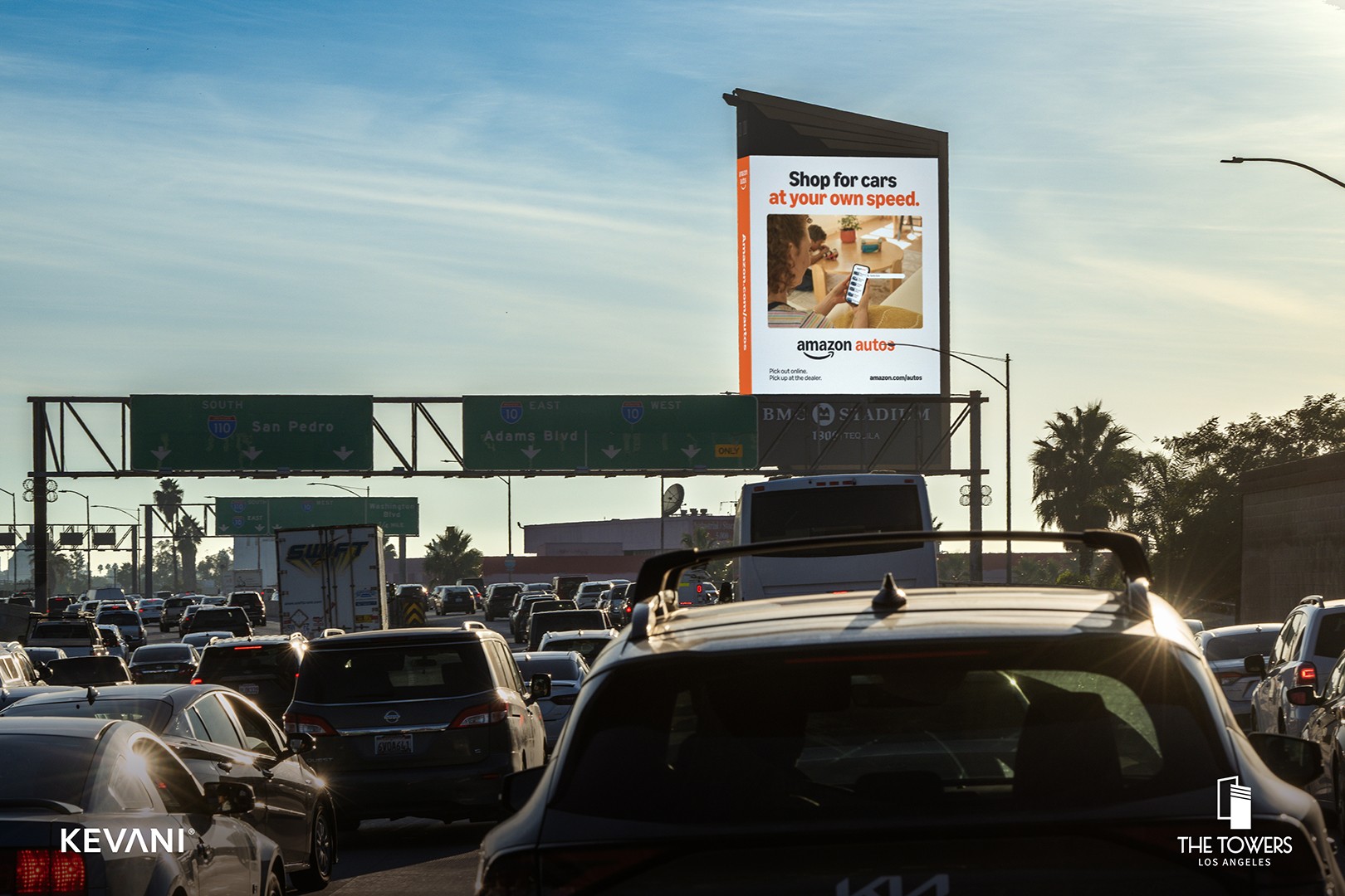 The Towers are LA’s newest digital landmark, comprised of a set of massive structures along the 110 freeway. They feature a pair of three-sided synchronized digital displays totaling over 9,400 square feet on the third busiest freeway in the US. The key placements are within 20’ from the freeway & target commuters traveling to and from work, as well as luxury shopping and sporting destinations.