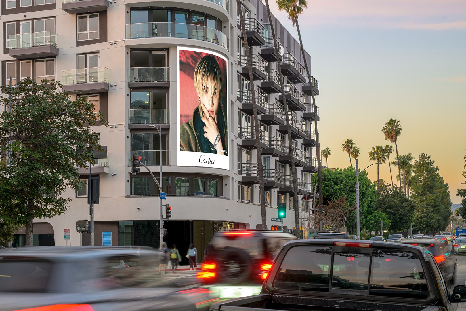 Vue is a landmark digital advertising destination at the intersection of design, density, and culture. Spanning 550 square feet and powered by an 8 mm high resolution display, Vue delivers exceptional clarity and visual precision at architectural scale. Integrated into a contemporary, Miami inspired façade, the display reads as living design rather than traditional media. Surrounded by constant pedestrian movement and nonstop vehicular traffic, Vue commands approximately 20 million monthly impressions, offering brands a commanding on-premise presence in one of Los Angeles’ most competitive urban environments.