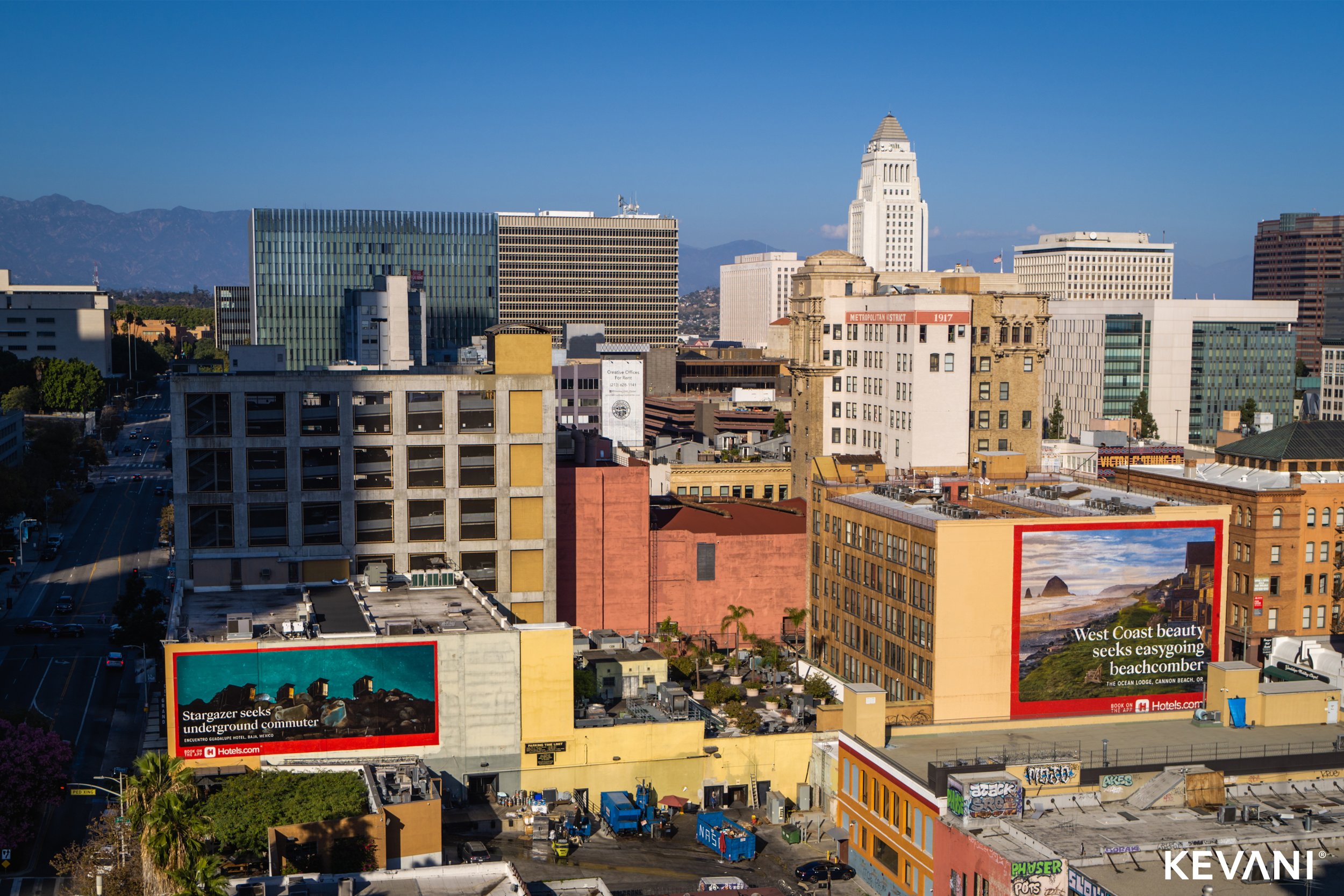 A giant Hotels.com advert on the side of one of the oldest, mix-used buildings in downtown Los Angeles is hard to miss.