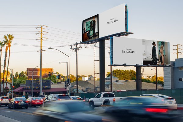 The displays tower above one of West Hollywood’s busiest thoroughfares and provide an enormous, 3,072-square feet of advertising space. Brands are offered a rare marketing investment opportunity as this unique tiered and multi-directional configuration of displays can deliver their messages to traffic approaching from all sides.