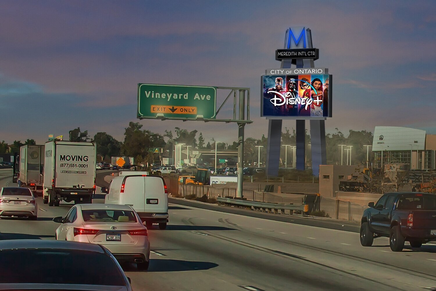 Launching in April 2020, the i10 BEACON is a powerful large-format digital destination featuring 2,700 square feet of digital display space (1,344 square feet per face). The structure will rise 105 feet above I-10 near the Ontario Airport, with screens operating 24 hours per day, allowing advertisers to capture the attention of both eastbound and westbound traffic.