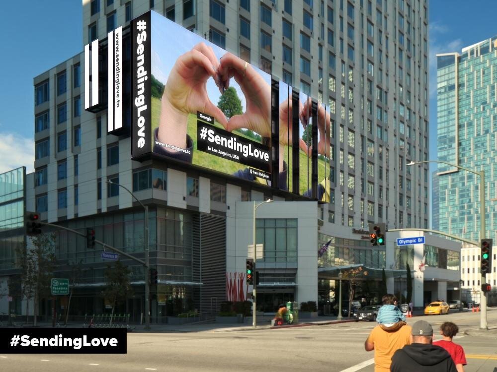 User-generated messages of love and unity are being displayed on digital Out of Home screens worldwide with social media amplification ensuring the messages are seen by millions - at home.