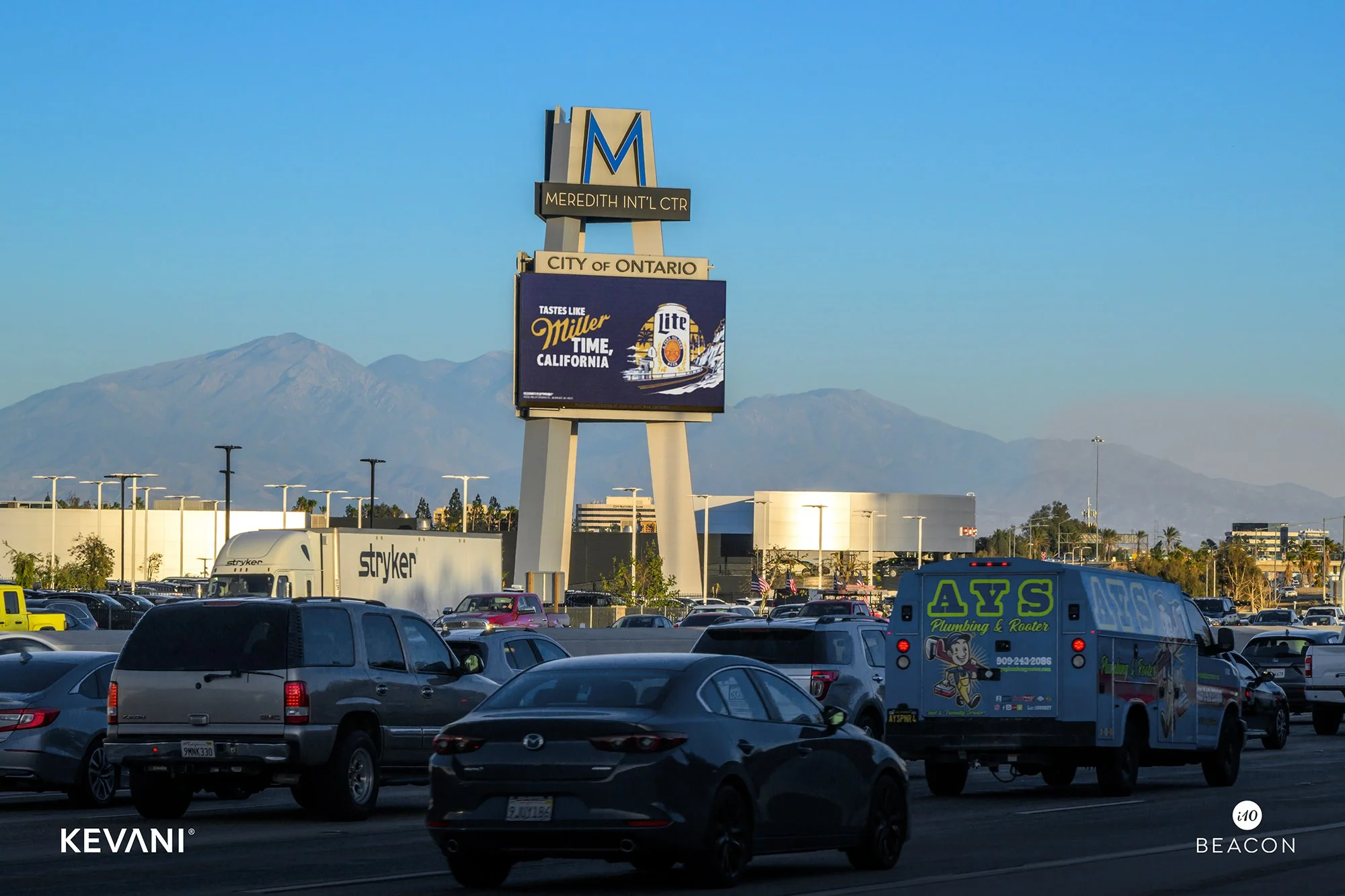 i10 BEACONA powerful large-format digital destination featuring 2,560 square feet of digital display space (1,280 ft² per face). i10 Beacon is located on the I-10 freeway near the Ontario Airport, with screens operating 19 hours per day, allowing advertisers to capture the attention of both eastbound and westbound traffic.